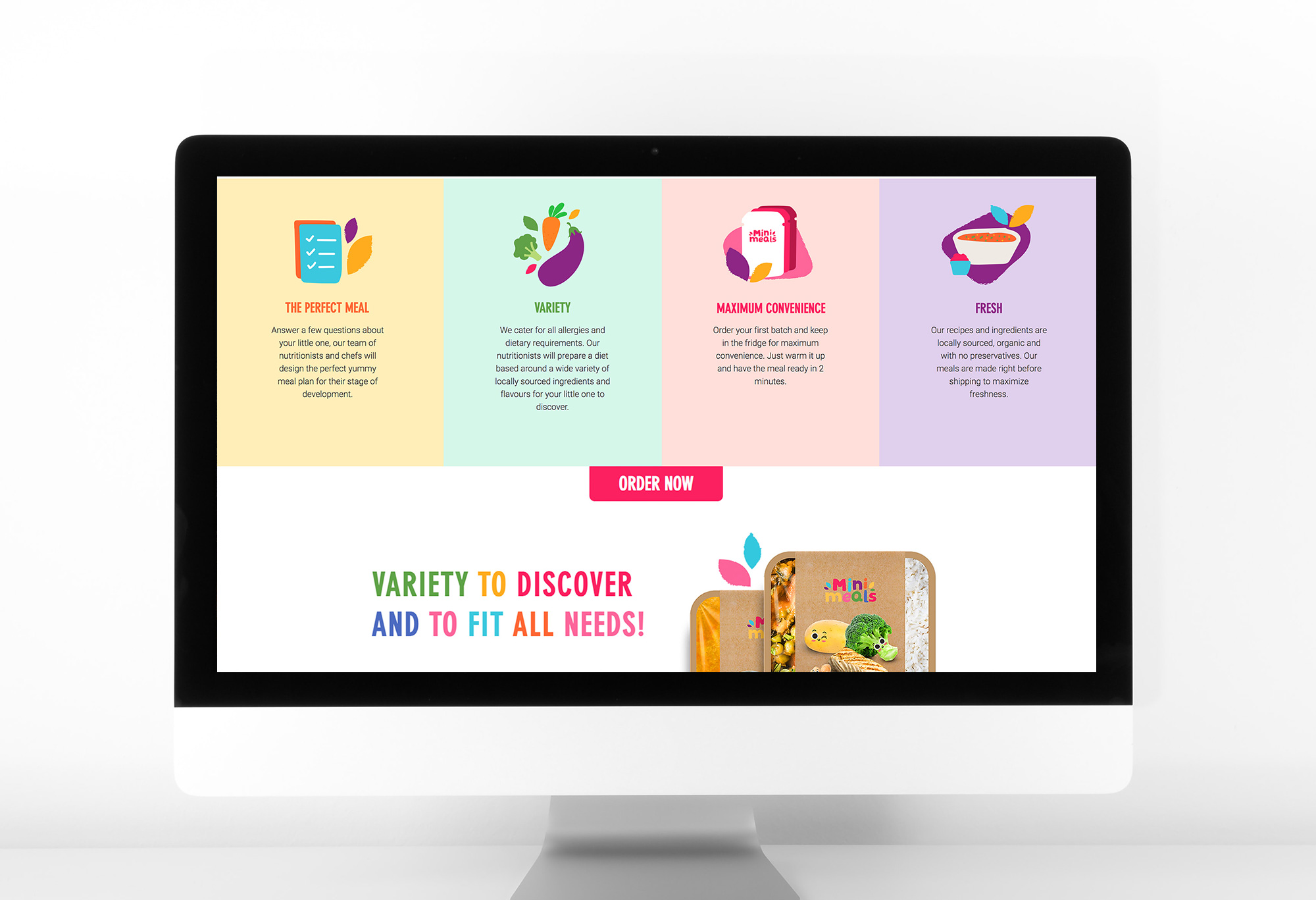 Mini Meals Branding, packaging and web design for a prototype of a new product for babies and toddlers.
